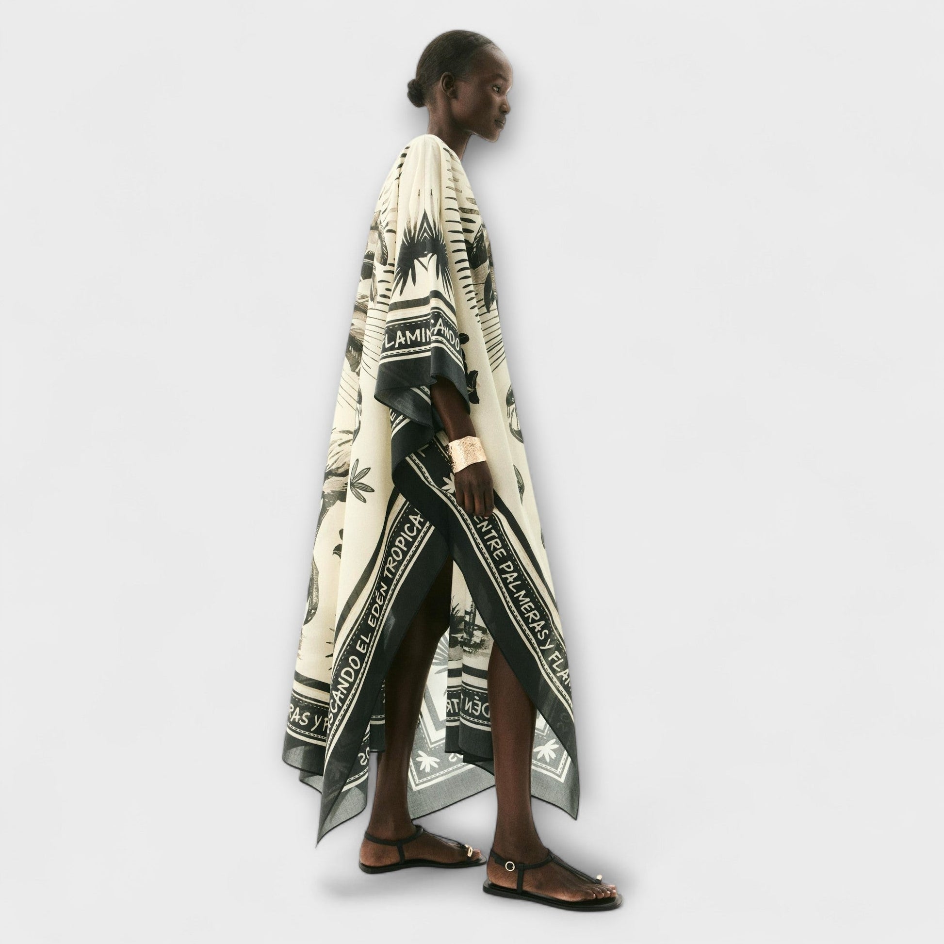 Ajoutez une touche d'élégance à votre style de vacances avec notre robe kaftan surdimensionnée imprimée flamant rose, conçue pour une élégance et un confort sans effort. Cette pièce magnifique présente un imprimé ludique de flamants roses et de palmiers sur une base chic beige clair et noire.