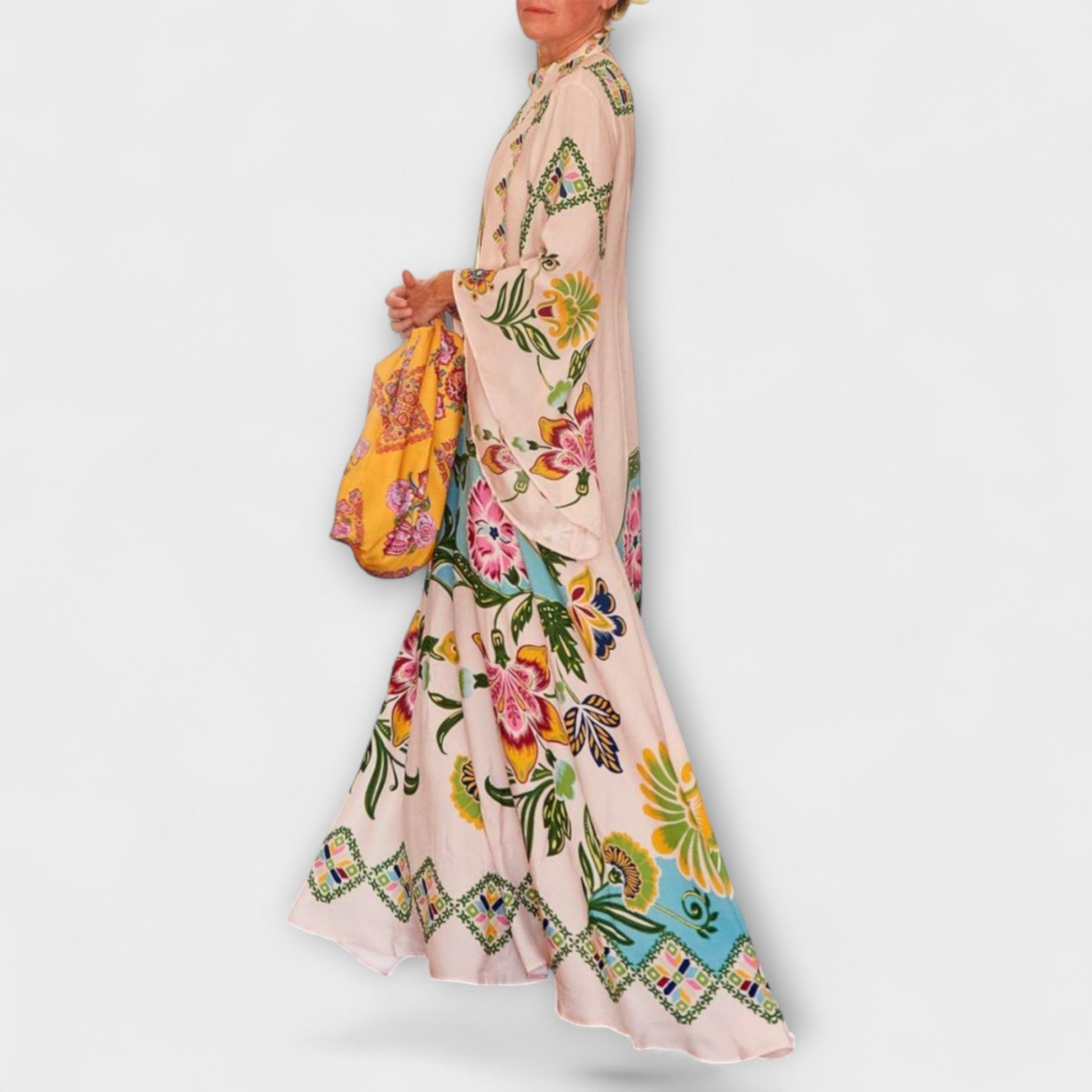 Élevez Votre Garde-Robe avec notre magnifique robe maxi qui présente un imprimé floral ensoleillé et vibrant. Confectionnée à partir d'un tissu de haute qualité, doux et respirant, cette robe garantit un confort tout au long de la journée tout en faisant une déclaration de style.